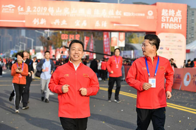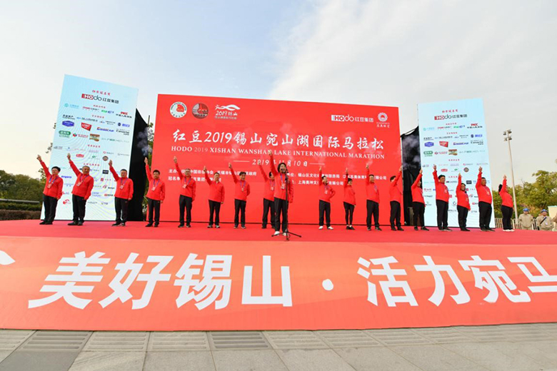HOdo Group, as the exclusive title unit of this year's Wanshan Lake International Marathon and a well-known local company in Wuxi, gave great support to the event. All participating clothing and finished clothing were provided by HOdo Sports. The starting point and ending point of Wanshan Lake International Marathon happened to be next to HOdo Fortune Plaza.